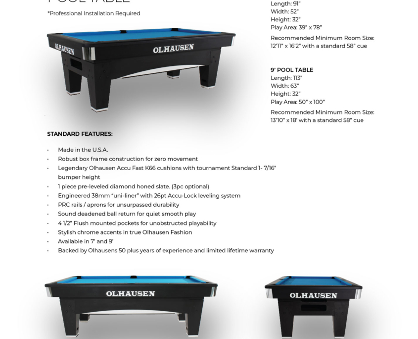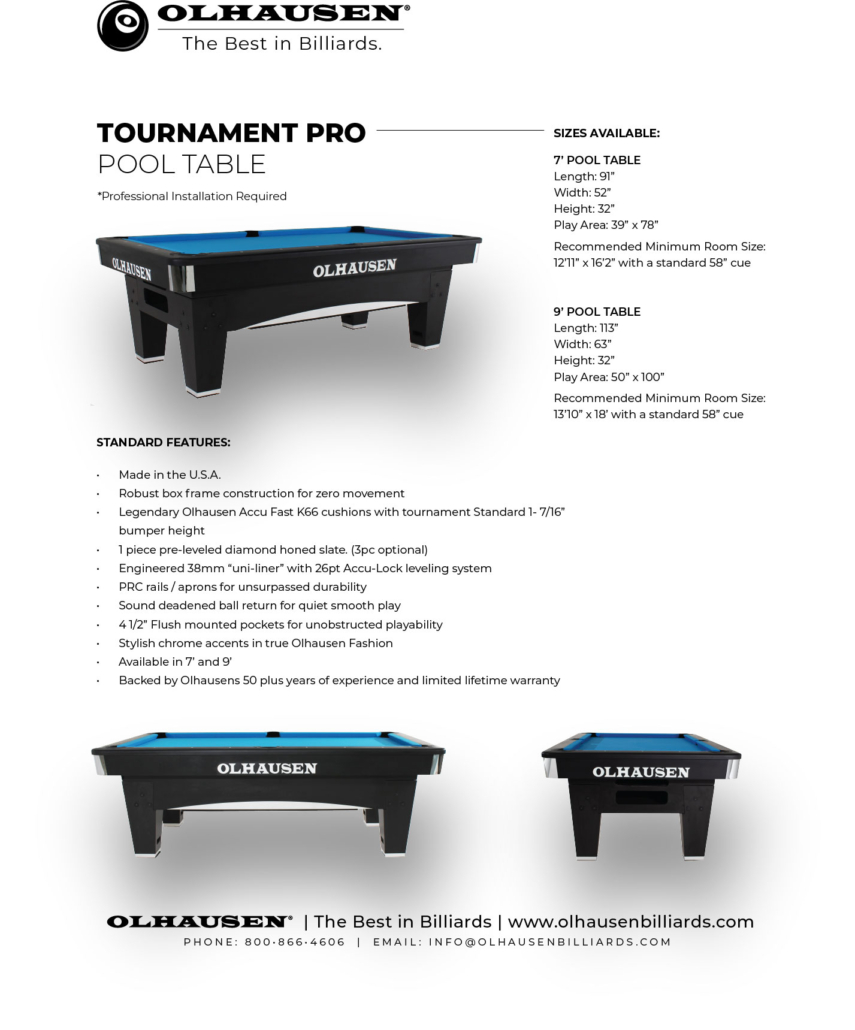 Olhausen tables are proudly crafted in Tennessee, ensuring quality, precision, and reliability while supporting American jobs and the economy.